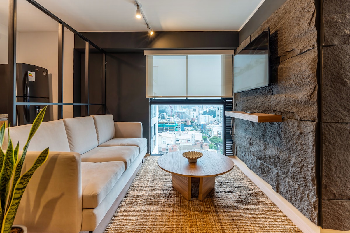 Explore the city of Lima, from our cozzy mini apartment, with and exclusive location beetween the most turistic districts and accesible avenues in Lima. An spectacular view to the sea from the terrace, a couple of blocks away from the pier and really close to restaurants, bars, turistic places and a lot of entertaining options. It’s building with 24/7 frontdesk , it has a private parking and common areas like outdoor pool, gym, laundry room.