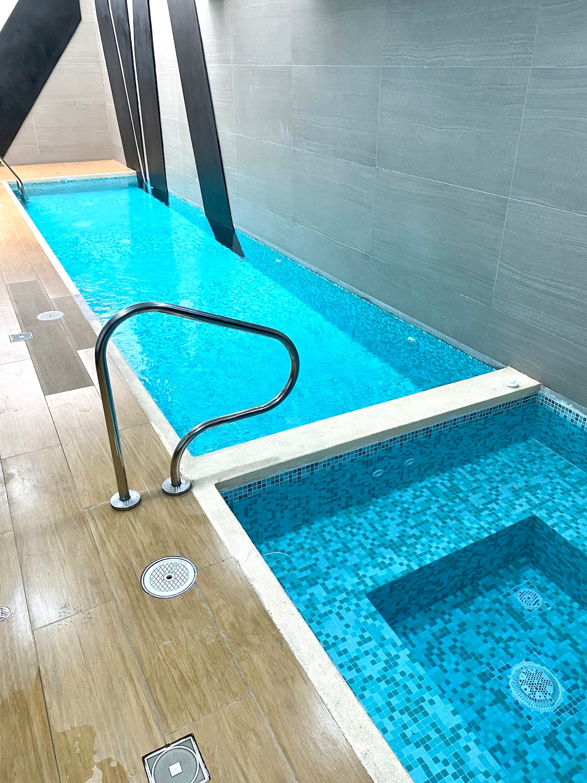 带泳池、按摩浴缸、桑拿和露台的复式套房