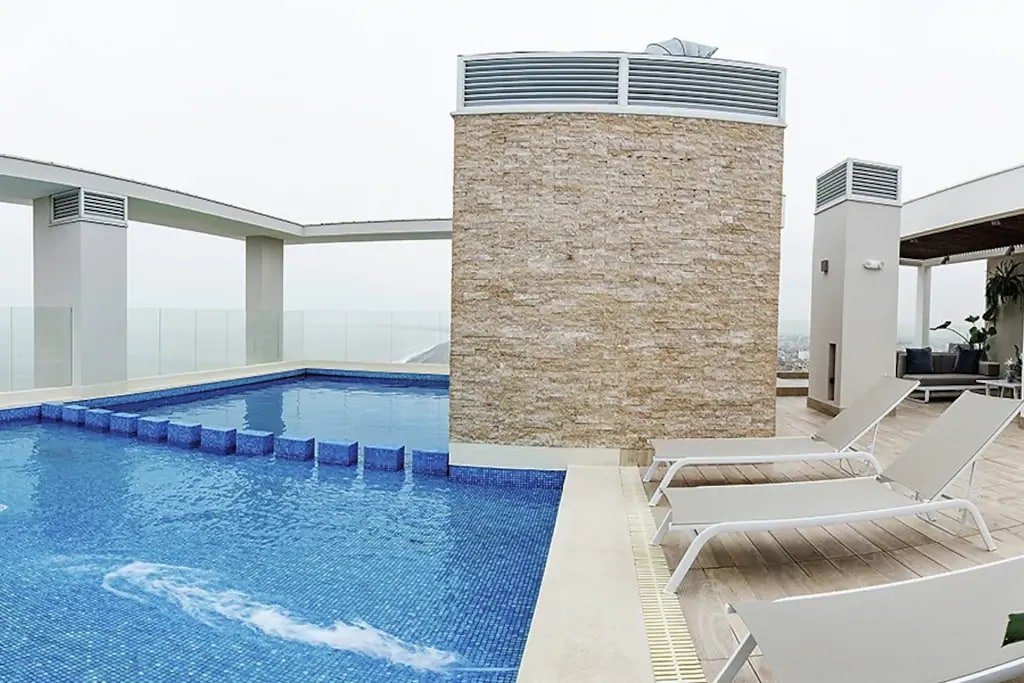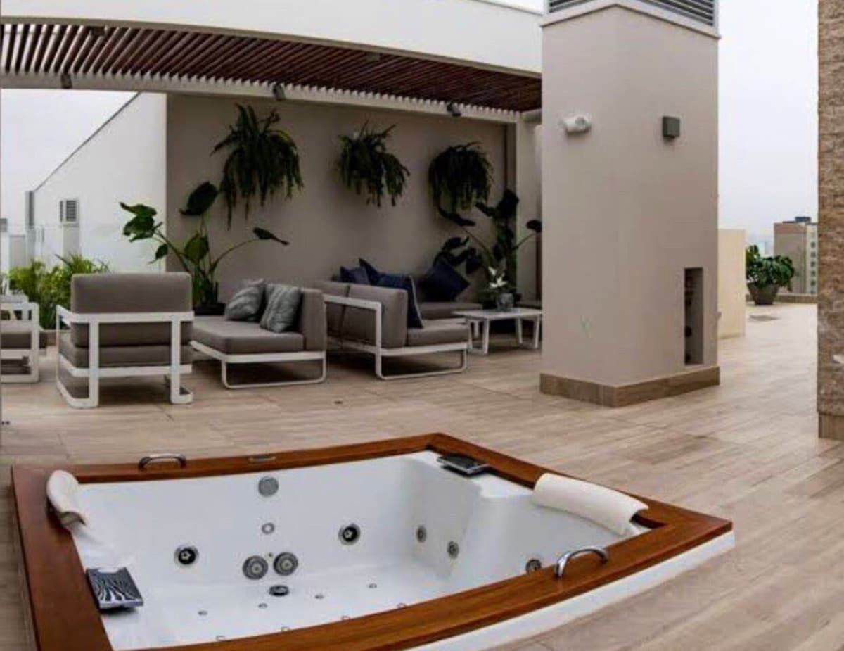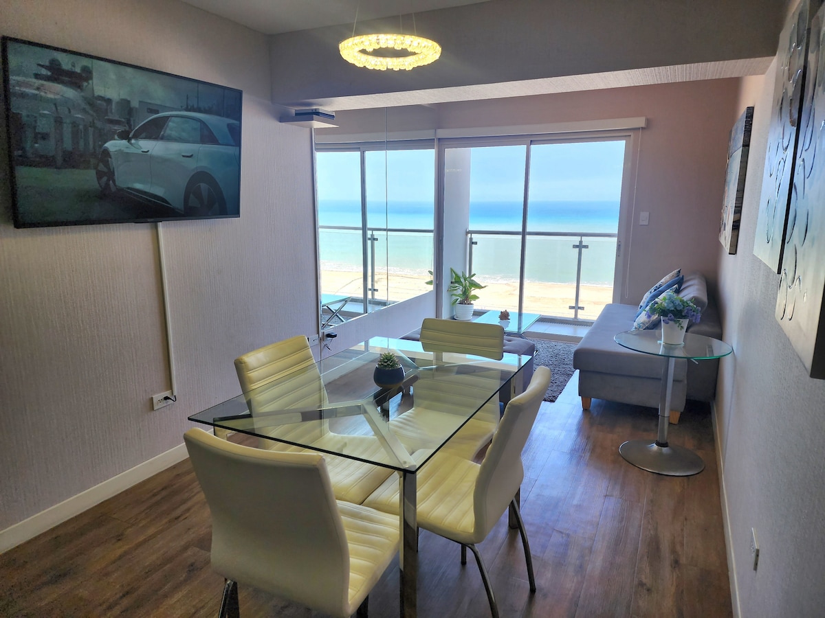 El Departamento esta ubicado cerca al aeropuerto y a 15 minutos de Miraflores por el circuito de playas ,puedes disfrutar de una vista al mar desde todos los ambientes ,contamos con servicio de transporte y tenemos soporte al huespede 24/7. . El departamento está totalmente equipado , agua caliente de alta velocidad, Wifi , 2 TVs de 55’ y cuenta con una piscina panorámica en el ultimo piso , así como sauna y gimnasio .