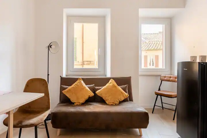 Il nostro luminoso monolocale si trova al terzo piano di una piccola palazzina (senza ascensore!) in una stradina tranquilla del centro a due passi dal Minimetrò e da tutti i principali punti di interesse. La casa è piccola ma abbiamo cercato di renderla il più accogliente possibile e di arredarla con semplicità e con cura. Ha una bella vista sui tetti e uno scorcio di panorama sulle colline intorno alla città. TOURIST TAX 1,50€/day a person per 7 notti Pay at checkin CIN IT054039C23L031688