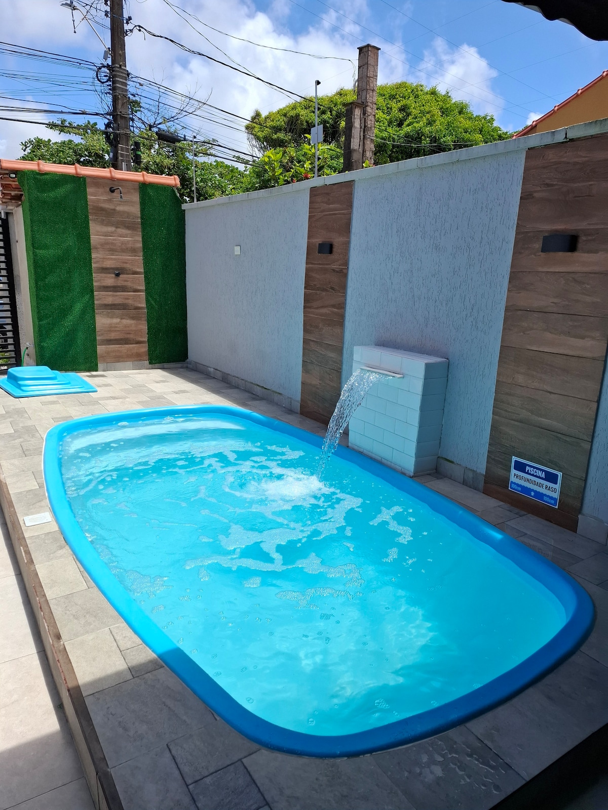 Linda casa localizada a 700mts da praia, tem 2 quartos sendo 1 com suíte, o segundo quarto tem 2 triliches mais colchões de casal e de solteiro, cozinha toda equipada para não se preocupar/ sala com tv smart para você curtir um YouTube e Netflix com sua conta, ventilador de teto na sala e nos dois quartos para ficar sempre fresquinho, banheiro, piscina tem uma linda cascata, churrasqueira com lâmpada, garagem para 4 carros, muro com concertina, câmeras de segurança e wifi livre.