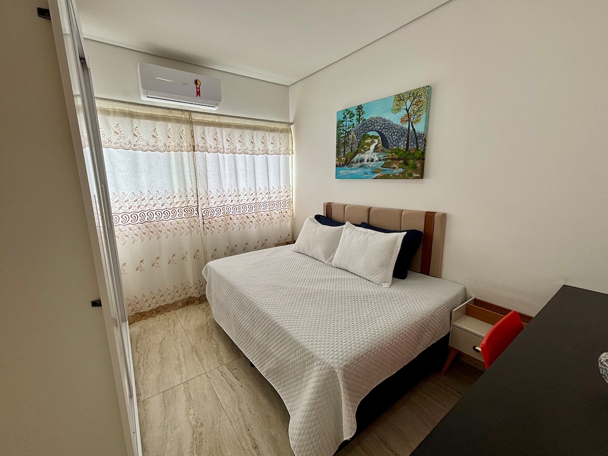 Apartamento moderno com ar-cond. e estacionamento