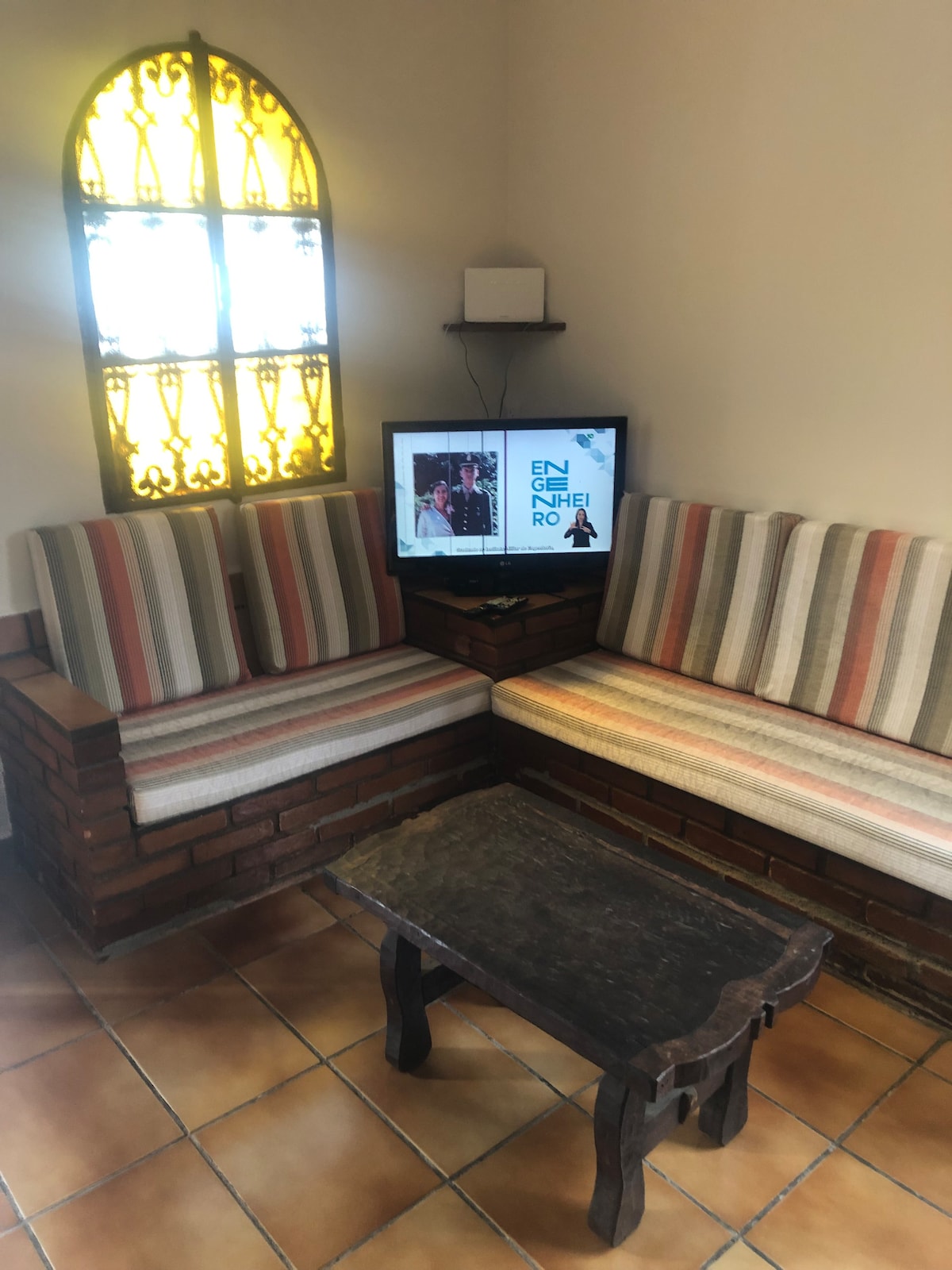 Nessa suíte privativa você terá frigobar, microondas, TV Samsung Plus, ar condicionado e ventilador. O banheiro é privativo.