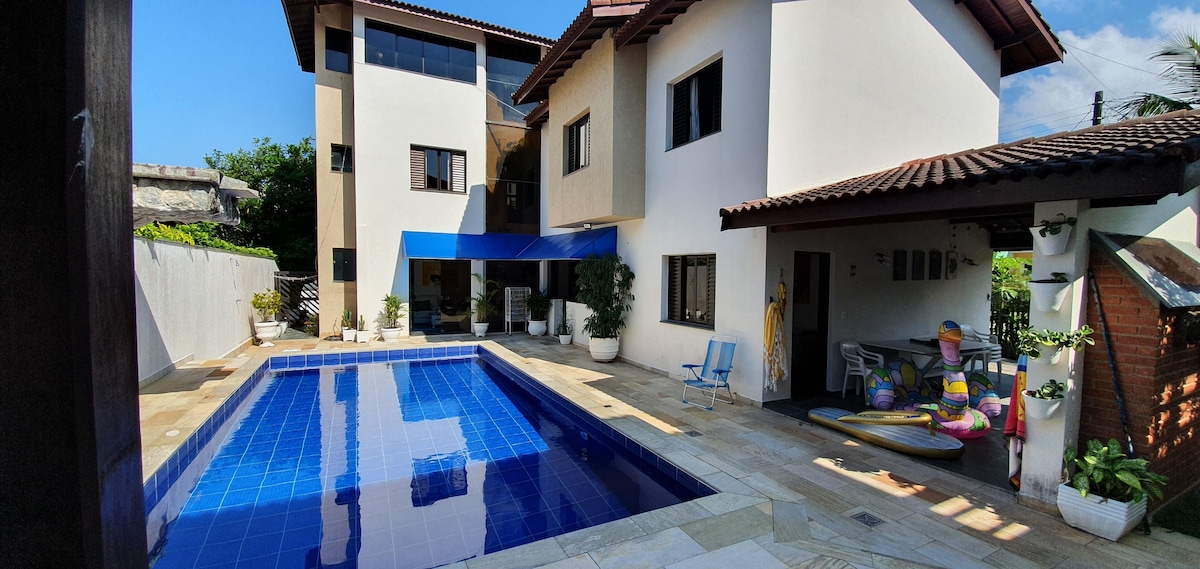 Leve toda a família a este ótimo lugar com muito espaço para se divertir. Casa super agradável, possui 4 suítes, piscina, ar condicionado em todos os quartos, dentro de um condominio fechado em frente a praia, super seguro, com quadra de tennis, quadra de futebol, academia, playground infantil, recreação e serviço de praia.