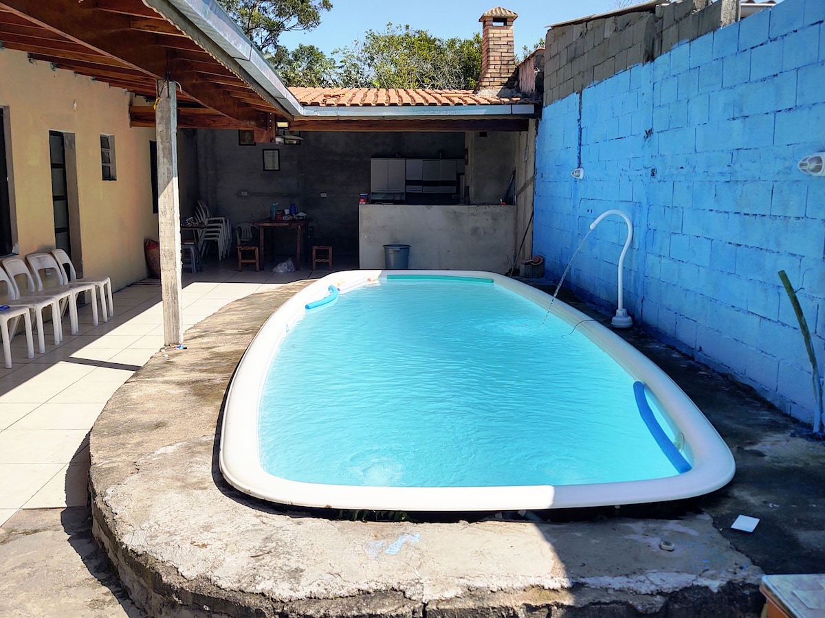 Relaxe e aproveite a tranquilidade a 400m da praia! Casa privativa e segura, equipada com geladeira, fogão, TV, churrasqueira portátil, utensílios básicos de cozinha, sanduicheira, forninho e Wi-Fi grátis. Localização excelente: na esquina da principal avenida, com mercados, padaria, farmácia, academias, quadra de tênis e lojas. Fica atrás do Maná Mercado Natural. O ponto de ônibus está na esquina, garantindo fácil acesso. Perfeito para quem busca descanso com conforto e praticidade!