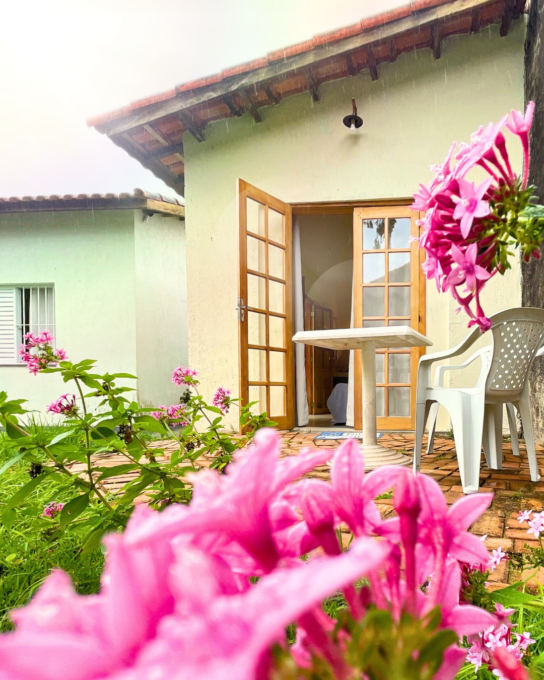 Suíte no Jardim é uma suíte com 15m2, confortável e acolhedora. Ao lado, uma churrasqueira com estrutura de cozinha para refeições e lanches rápidos. Delicioso jardim com árvores, chuveirão, fogueira, redes. Ideal para casais. Esqueça suas preocupações neste lugar espaçoso e tranquilo, perfeito para relaxar e descansar da correria do dia a dia. Estamos pertinho de restaurantes, supermercado, bares e a 500mts da praia. Peruíbe, portal do Parque da Jureia-Itatins.