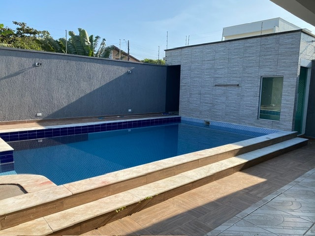 Antes de mais nada, um Aviso: se está buscando um local para festas ou para uso de som alto, ainda que durante o dia, esta não é a casa ideal. Este ótimo lugar com muito espaço para se divertir. Ampla piscina com rede de segurança para crianças e pets. Churrasqueira, piscina e cozinha. 4 quartos suítes com ar condicionado sendo um no andar térreo, ideal para idosos. Mais um quarto com ventilador e banheiro social. Privacidade e conforto. Garagem p/ até 4 carros. A 500mts da praia.