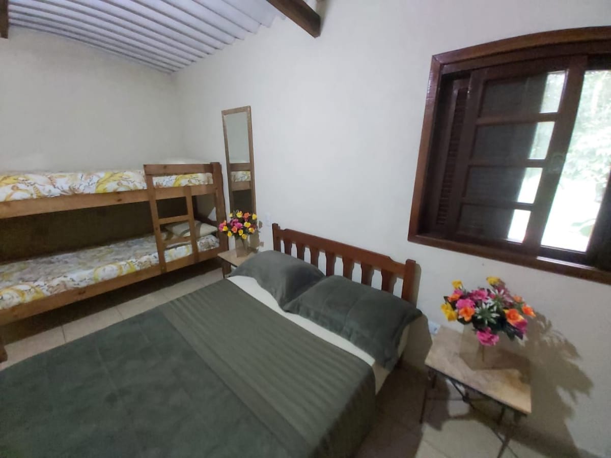 Casa com 2 quartos, sala de estar, cozinha americana e 2 banheiros sendo um externo. Nossa casa possui Internet sem Fio (fibra ótica), TV a cabo (sala e quarto), ventiladores nos quartos, churrasqueira com espaço gourmet e uma linda piscina com cascata com iluminação noturna! Para a segurança de todos os nossos clientes e casa possui cerca elétrica e monitoramento por câmera 24H. A casa possui 4 camas (uma de casal + três solteiros) além de 5 colchões adicionais.