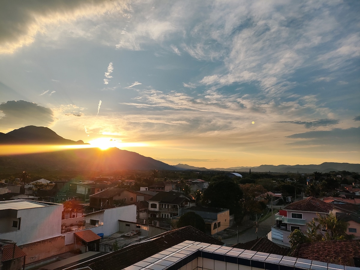 apartamento moderno e aconchegante, a uma quadra da praia e com uma vista incrível das montanhas. O crepúsculo visto da varanda é uma obra de arte, o caminho até a praia é lindo e muito tranquilo com ruas largas ao melhor estilo praiano. Prédio famíliar, seguro e tranquilo, se hospedar é muito mais que uma estadia na praia É UMA EXPERIÊNCIA DE BEM ESTAR E CALMARIA A BEIRA MAR #godbless **Não oferecemos roupa de cama e banho**