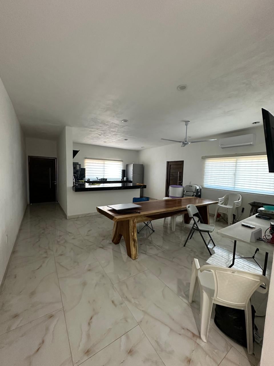 Amplia y cómoda, wifi, recamara 1: a/c, 1 cama QS, 1 mat., 1 ind., colchón, baño, closet-vestidor; recámara 2: a/c, 1 cama KS, 1 ind. y closet; recámara 3: a/c, 3 camas ind., roku tv; en la sala 2 sofas, love seat, cama ind., y roku tv, comedor grande; cocina equipada; patio de servicio, 3 baños, asador, tarja; terraza, hamacas y mobiliario, cochera para 6 coches, 700 m2 de área con plantas, ventiladores de techo, a 7 cuadras de playa, se aceptan mascotas (no sobre muebles).