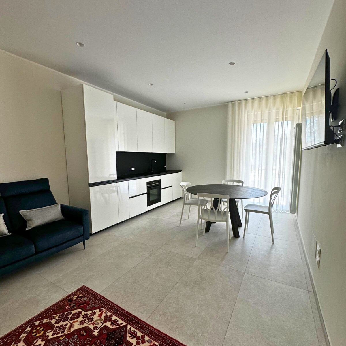 Grazioso bilocale ideale per una coppia in viaggio, o per chi lavora, al secondo piano servito da ascensore, composto da cucina attrezzata di tutto e con lavatrice; camera-soggiorno con letto matrimoniale, divano 3 posti, tv, scrivania, ventilatore a soffitto. 100 m da spiaggia libera con chiosco bevande e doccia; 700 m da stazione ferroviaria, terminal bus; 300 m da zona locali; zona centrale e di passeggio (parco lineare "strada parco"), ampiamente servita da mezzi di trasporto pubblico