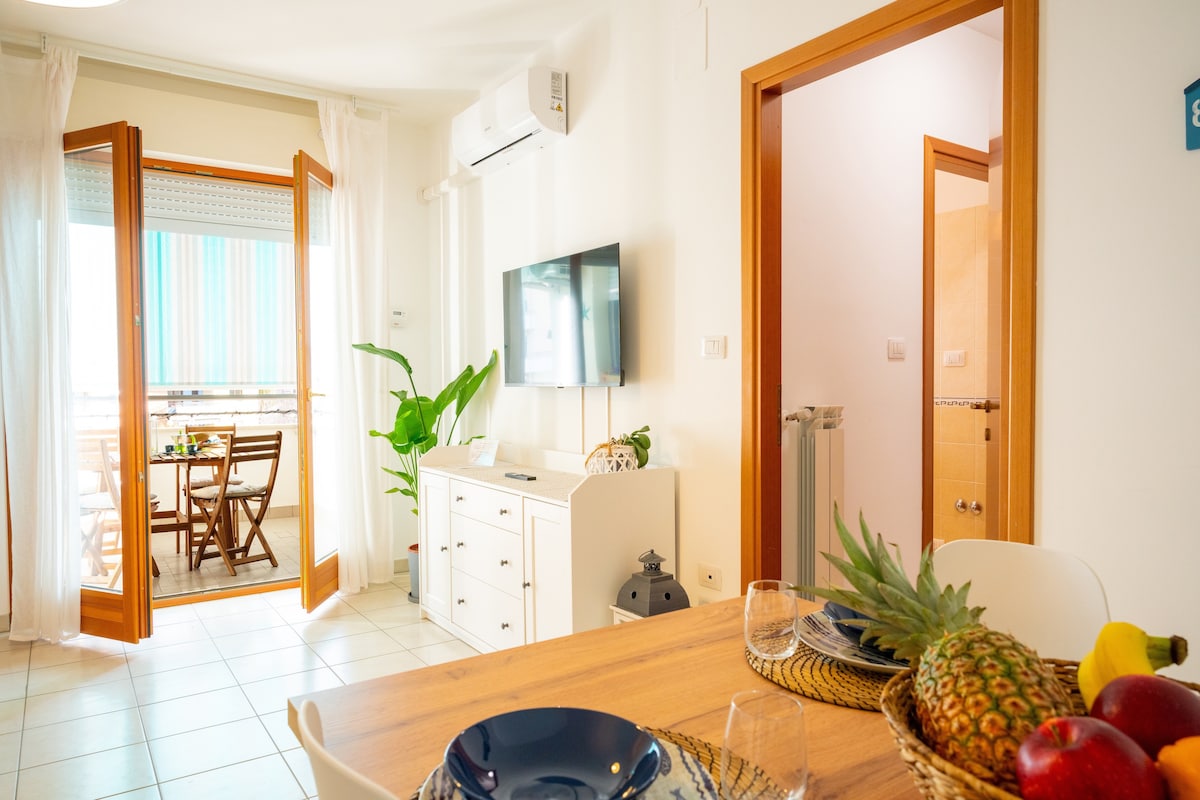 SEA APARTMENT is perfect for every traveller. Right in the city CENTRE, this Luxury Structure offers a balcony with a SEA view and a car park 20 metres away. The modern and equipped kitchen, high-speed Wi-Fi and air conditioning guarantee total COMFORT. The spacious living area, with a comfortable sofa bed, is ideal for relaxing. The double suite is elegantly furnished. Close to restaurants, shops and cultural attractions, it is perfect for holidays or business trips. @pescaraapartment fb ig