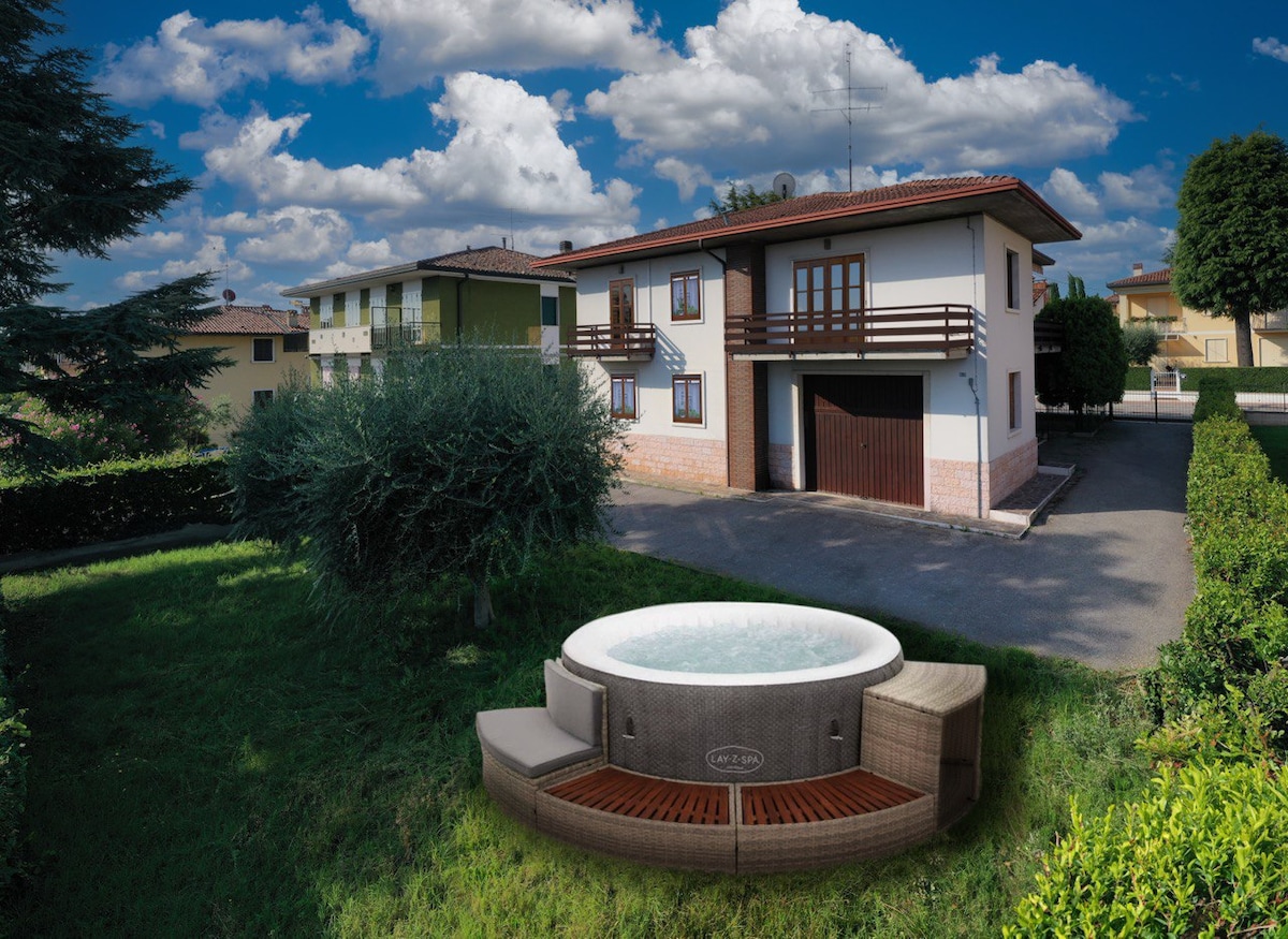 Guendalina Suite Verona, si trova a pochi minuti dal centro, immersa nel verde con meraviglioso panorama. Guendalina suite Verona è una casa dal design moderno dotata di AMPIE VETRATE, A/C, TV, soggiorno con divano letto (oppure su richiesta 2 letti singoli) cucina con zona pranzo. Camera matrimoniale letto King-size e armadio annesso. Bagno con doppio lavandino, doccia grande. Giardino recintato, terrazza solarium. Piscina ore 9-13 14:30-19 Noi proprietari viviamo a lato, x richieste/aiuto