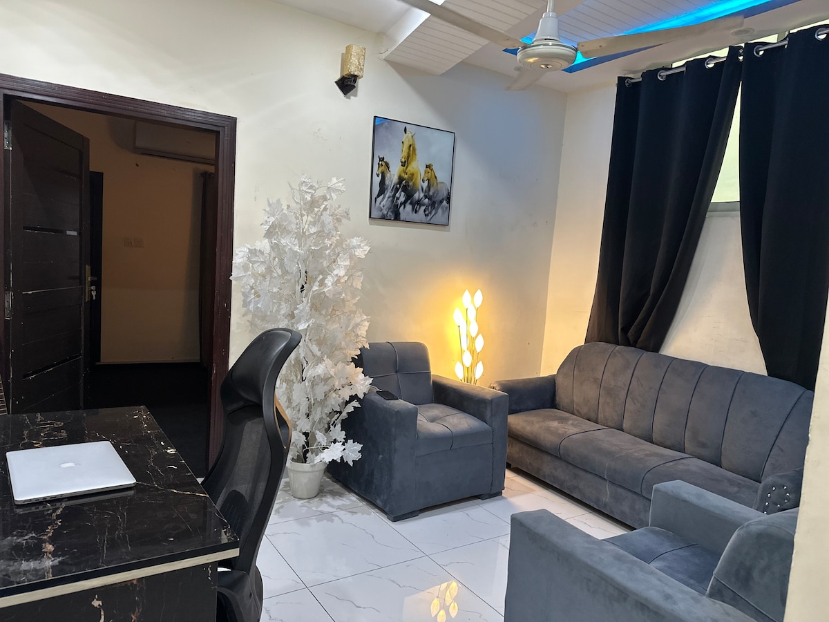 Enjoy a stylish stay with a fully furnished bedroom, a spotless bathroom, and a well-equipped kitchen. Relax with room theater speakers, perfect for music and movie lovers. A secure car porch ensures hassle-free parking. Ideal for families, married couples, and business travelers, this home offers comfort, privacy, and convenience. Book now for a peaceful and memorable stay!