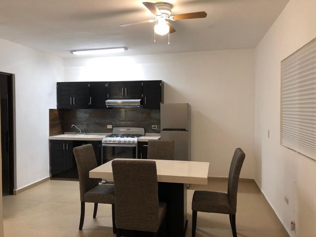 Bonito y amplio departamento cerca de Aeropuerto de Monterrey. El lugar es muy amplio, cuenta con sala, cocina, comedor, una recamara, baño completo y terraza con asador. - 10 min al Aeropuerto - 10 min al centro de Apodaca - 15 min a Pesquería - 20 min al centro de Monterrey