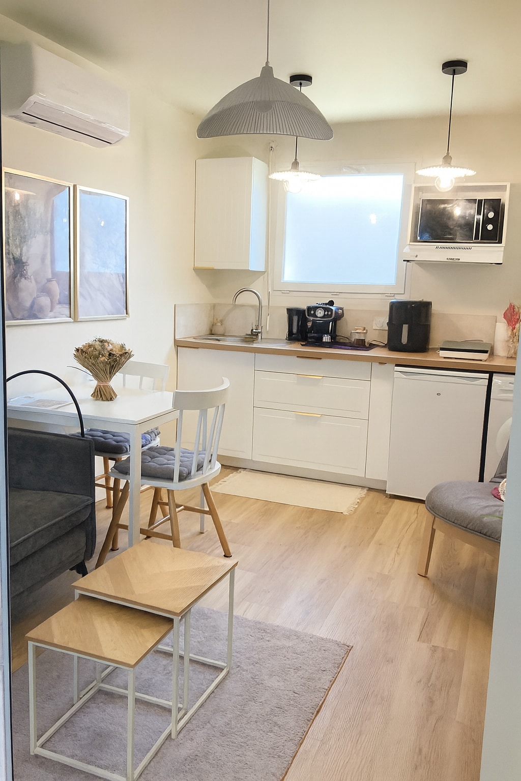 Charmante maisonnette avec terrasse privée et entrée individuelle. Idéal pour 1-4 personnes, cosy et élégante offre une mezzanine avec un lit double et un canapé-lit confortable. À seulement 5 km de l’aéroport de Mérignac (transfert possible), elle est idéale pour explorer Bordeaux (15 min en tram), ses célèbres vignobles et plages océaniques. Arrêt de bus - 2 min, tram - 15 min à pied. Profitez d’un petit-déjeuner léger offert, d’un cadre calme et verdoyant, et d’un parking gratuit dans la rue.