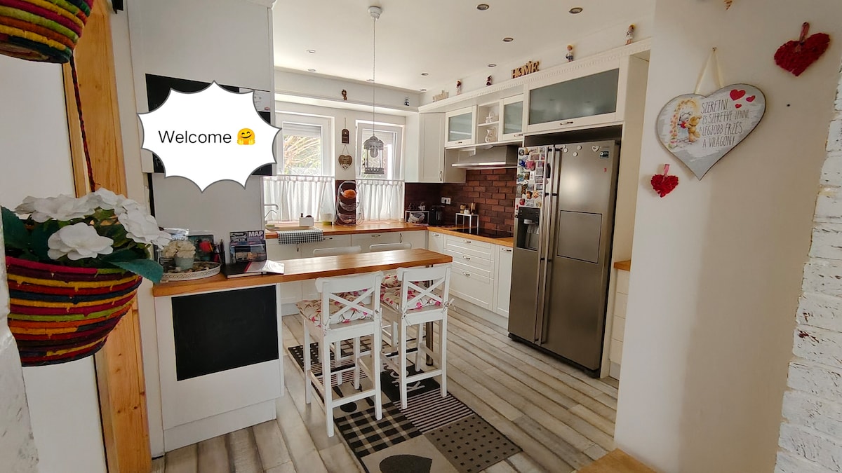 Liszt Ferenc Airport is in distance of 5 km. Private garden and pool. Just yours. Free WIFI. Bedding textiles and towels are free. Smoking sitting place is outside in the garden. Fully equipped kitchen, dishwashing-machine. TV with foreign language channels. Free parking. City centre is in distance of 30-50 min. Full climatization. Shops are direct neighbouring.