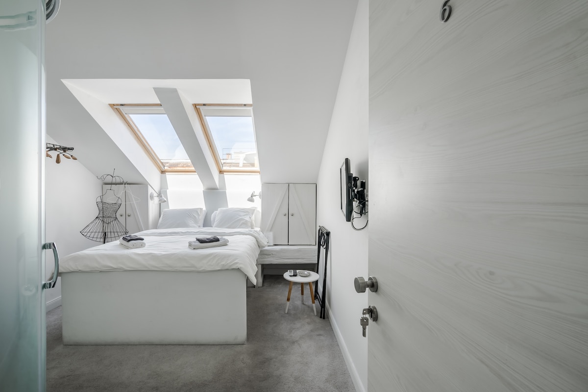 HOTEL ROOM WHERE YOU CAN TRULY LIVE Prime real estate with exposed original baroque roof structure. Spacious attic room with large floor to ceiling window overlooking the rooftops and the bell tower of Mathias Church, a major attraction of the Buda Castle. Actually, you'll love this space, no matter your plans for the evening! Perfect for business and couples. Historic landmark building, room can be reached by stairs.