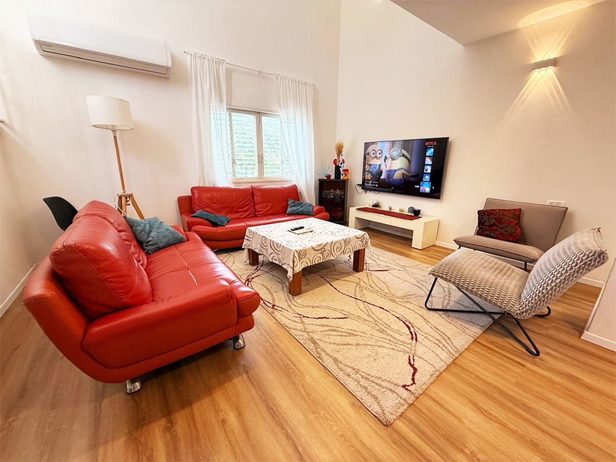 Bring the whole family to this great place with lots of room. A lovely Duplex Penthouse apartment in a quiet neighborhood with lots of fresh air. Renovated and fully equipped a specious living room, 3 bedrooms each with a Queen bed and AC, 2 baths, super-fast internet and a nice roof top with open skies and plenty of views. A 3rd floor walk up (no elevator), parking and a building shelter. Raanana is a central city, very convenient to travel all over Israel. 15 mins from the beach and Tel-Aviv.