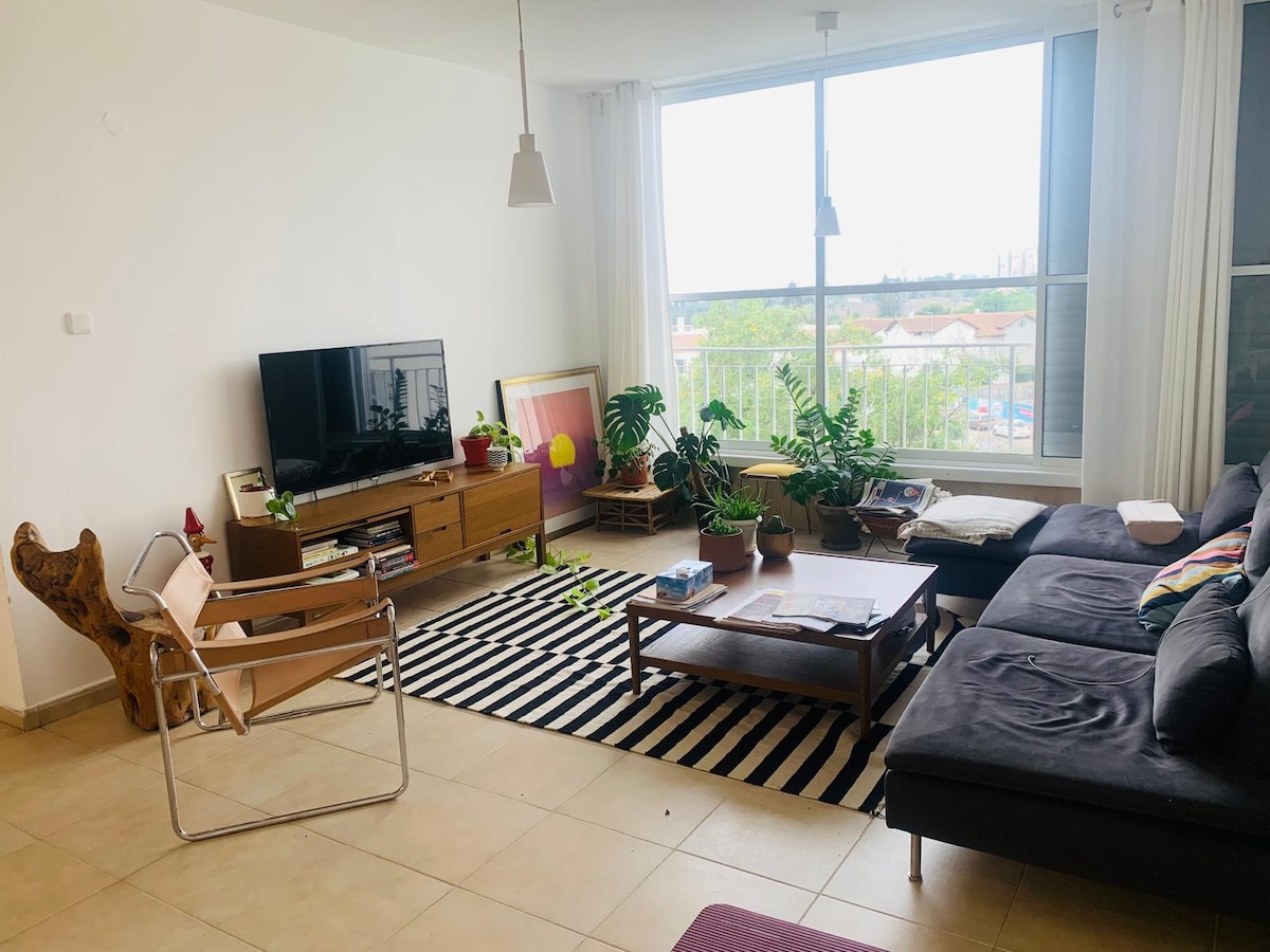 Newly Designed - 3bed/2bath apartment! Short walking distance from cafés, parks, shops & grocery. Comfortably sleeps 6. Washer/dryer, CableTV, WiFi, A/C. Fully equipped kitchen. Extremely unique balcony seating. 1st floor; elevator, assigned parking. Close to transportation (train, bus, taxi). Easy access to Tel Aviv, Jerusalem, Haifa, via nearby Route 6