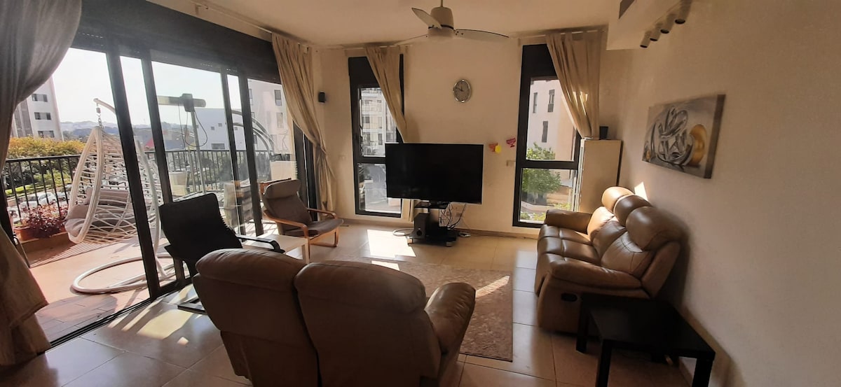 Relax with the whole family at this peaceful place to stay. Spacious 5BR family condo in a quiet green area of Petah Tikva. Park views from the balcony, 2 private parking spots, and a cozy home feel. Just 15 min by train to Tel Aviv and 15 min drive to the beach. Quick 5 min access to Highway 6 (north/south) and Road 5 to Tel Aviv. Fully equipped kitchen, large living space, and playgrounds nearby—perfect for families exploring central Israel.