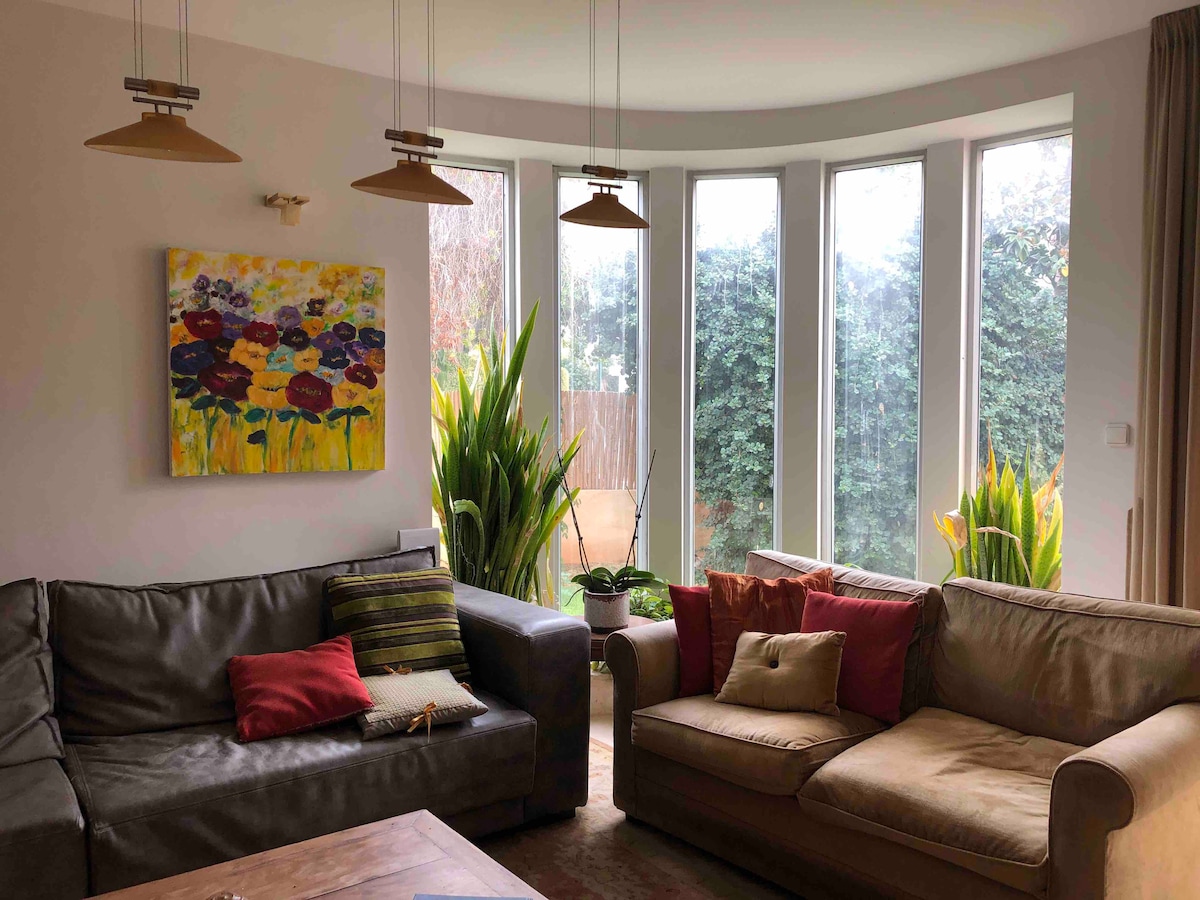 A pastoral garden surrounded by greenery, facing a quiet park. this luxurious 3 level home, with 4 bedrooms has beautiful high ceiling, open space living room and kitchen that is perfect for families with children. the house is well equipped. Great location, with quick access to the Coastal Road of israel and Tel Hashomer Hospital, only 15 minutes drive from Tel Aviv.