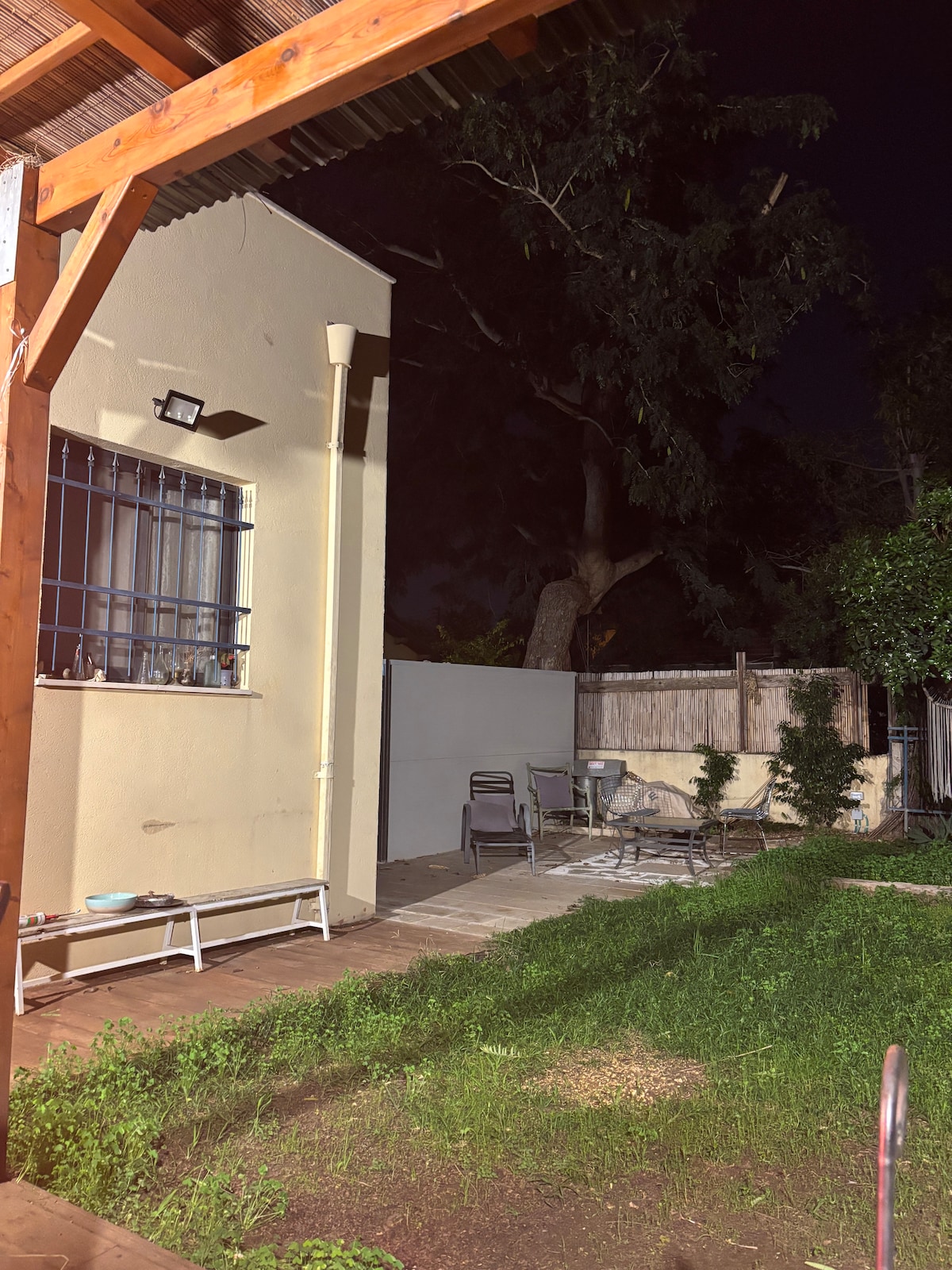 Our place is situated in our 250 sqm garden with an outdoor sitting place. The space is 9*3 metres, 27 sqm, located in a quiet neighberrhood with an easy access to go everywhere. There is a pizza, a supermarket and a grossery store near by. A wide park is in a minute walking distance for jogging and relaxing. Herzliya city center is in a 5 minutes walking distance. The place is decorated as a surfers cabin, the bed mesures are 140/190 cm.