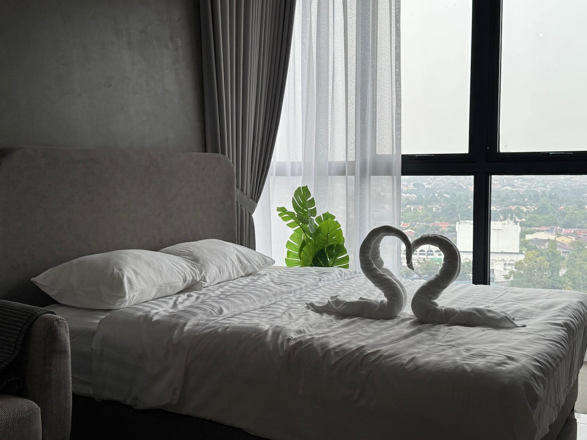 We practise self check-in, independent guests are more than welcomed (: Building construction is currently on going in front of the balcony area from approx 8am-5pm. Please take note. NEW & MODERN DUPLEX LOFT *Central location *Free wifi *Free Netflix High ceiling | Time 100Mbps Fibre Broadband | Organic mattress | Organic pillows | Dual balcony | Quality appliances | Digital lock 15 mins - KL city 3 mins - IKEA, One Utama, Ikano, Tesco, Kidzania, banks