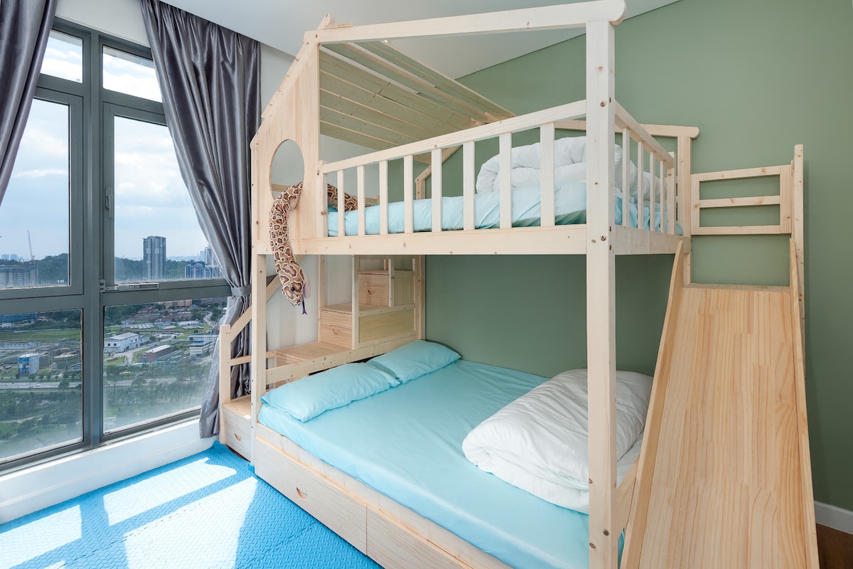 Have fun with the whole family as this place gives direct walking access via “sunway canopy walk” to Sunway Lagoon Theme Park, Sunway Pyramid mall, Sunway Medical Hospital and Sunway Uni. The place has natural dark wood floors, equipped with a UHD flat screen TV and Netflix channel. You will be blown away with the Sunway Resort view that is definitely an instaworthy, lending itself to being photographed and posted on your social media!