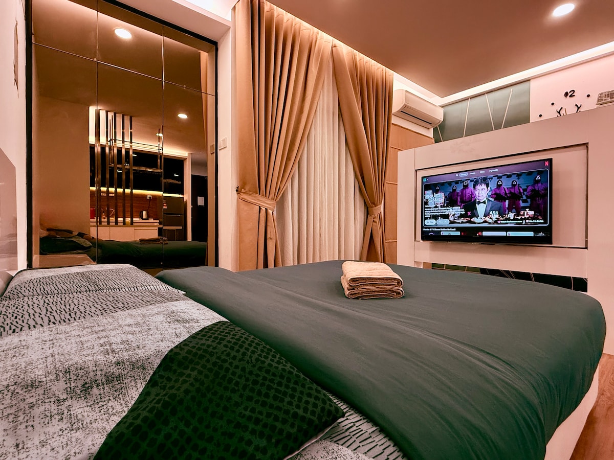 📍Pertama Residency Welcome to my New Bnb - Moonrise City! This studio is newly set up with lots of love, combines contemporary decor with modern amenities and an experience all can enjoy especially Jacuzzi moment with your love & 120” projector screen w/Netflix. This unique place has a style all its own, it offers a cozy, clean, quiet & refreshing stay environment for couples. Come and experience in the new bnb! See you.