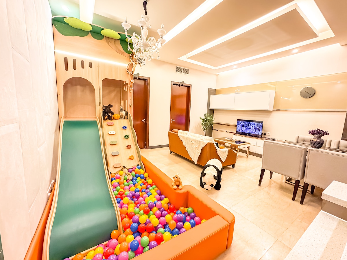Wild Wild Wonderland, a kid-friendly animal-themed apartment-style accommodation where kids learn about the animals, zoom past the slide into a ball pit and have independent play while parents sit back, relax and enjoy the holiday. We are located in Bukit Bintang, Kuala Lumpur and close to more than 40 attractions, with a 5 to 10-minute walk to: Pavilion KL TRX The Exchange Times Square Bintang Walk Hop-on-Hop-off Bus Stop Our unit is sanitized after every stay for the comfort of your family.