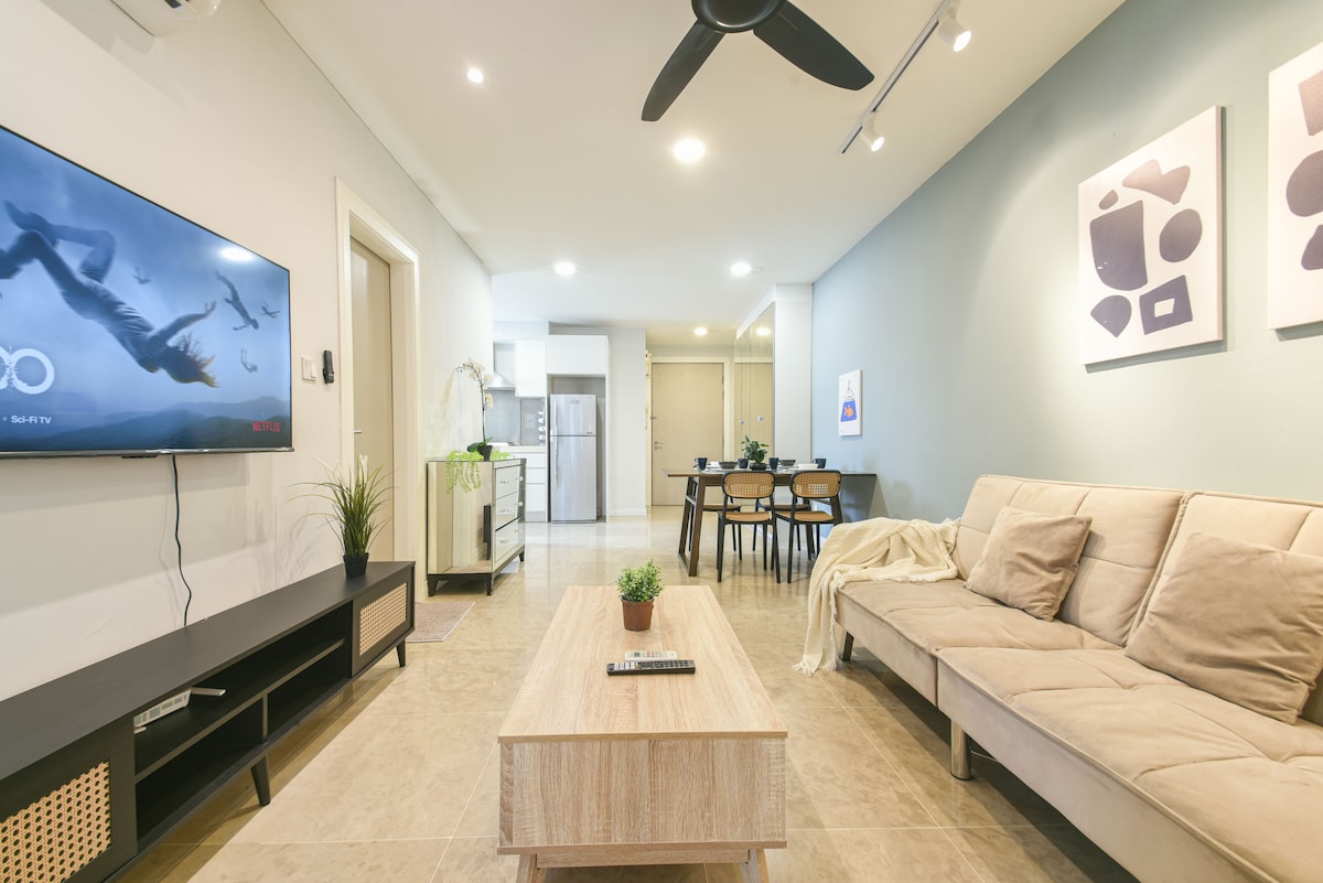 The perfect spot to enjoy a stunning sunset and views of Malaysia’s next tallest building, PNB 118. Our cozy KL City Center apartment offers easy access to public transport and major malls—3 to 5 mins to Lot 10 DON DON DONKI, Pavilion, and Sg. Wang. Surrounded by dining, nightlife, cafés, and convenience stores, all within walking distance. Enjoy Netflix, high-speed 100Mbps WiFi, Coway water, and essential WFH facilities for a comfortable stay.