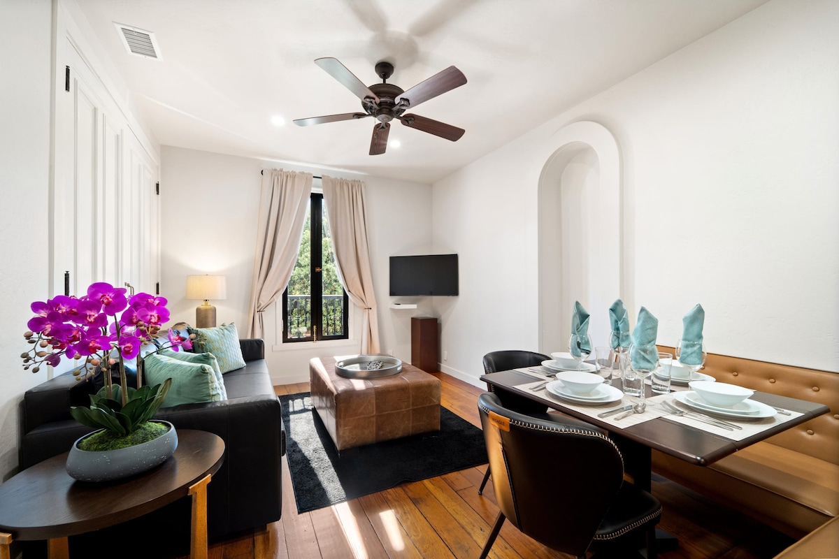 Stay in the heart of all the action and excitement. You're directly above the hottest nightclubs and restaurants (which can be noisy but we do provide earplugs ;) ) in the city in San Diego’s historic Gaslamp District in this updated studio flat designed for comfort and convenience. Ideal for up to 3 guests with a queen bed and a twin air mattress. Enjoy fast WiFi, a 48″ Smart TV, AC, a stainless kitchen, hardwood floors, secure access, and walkable access to Gaslamp Quarter.