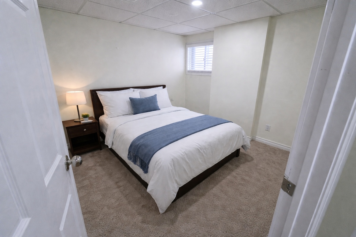 This is an fully furnished basement apartment Quiet neighborhood close to bus stop, shopping and restaurants. Ten minute drive to Oshawa Center and downtown Oshawa. Reserve parking in driveway on left side. Breakfast ingredients are included; Eggs, Waffles, Cereal ,Toast, Coffee , Tea and etc. Our guests can rest assured that the bedding is washed and changed with each and every new guest, and for those who stay for a week or more , bedding is changed every five days or upon request.