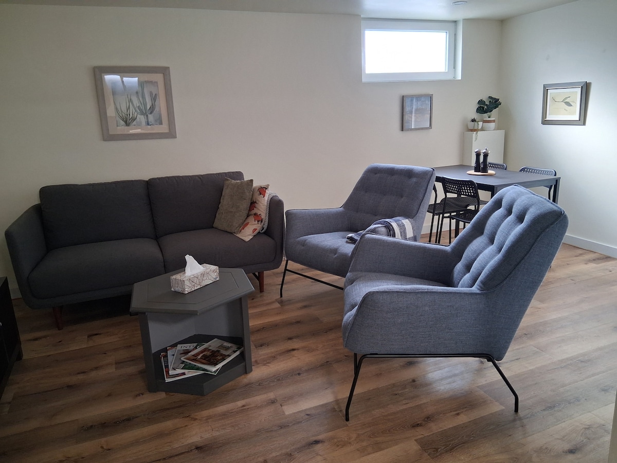 Lovely apartment in the "heritage district" of Peterborough. The perfect relaxing and cozy space for one or two people here for business or pleasure. In this self contained, lower level of our home, guests have a separate entrance, patio, full kitchen stocked with all the essentials, and access to the outdoor sauna for those cold days. You will feel right at home! Located just a 10-15 minute walk to downtown restaurants & entertainment, close to PRHC, and feet away from the bus route.