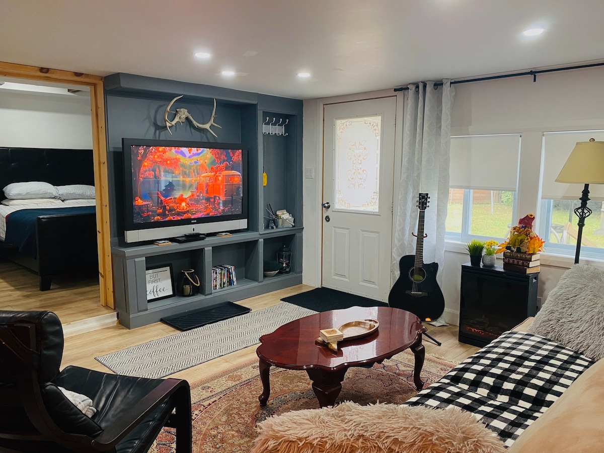 Located in a beautiful country setting, the River Road Retreat Suite is the perfect place to unwind and enjoy nature. Walking distance to the Trans Canada trail and Rice Lake, with boating launch available. The area has a lot to offer for families, boaters, snowmobilers and couples alike. Close to Ranny river suspension bridge and Warsaw caves .