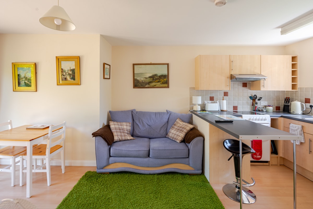 After our storming success for 6 years with our cosy Hayloft Apartment, we have totally refitted the bathroom, installed a brand new kitchen and added a single bedroom / study. Fresh paint, blinds and carpets throughout! Guests have dedicated parking [Now with EV Charging] a private patio for sunny breakfasts, lunches or sundowners. Home-cooked ready meals are available in the fridge or freezer when you arrive. Message when you book and we can supply details. The Welcome pack's a big hit.