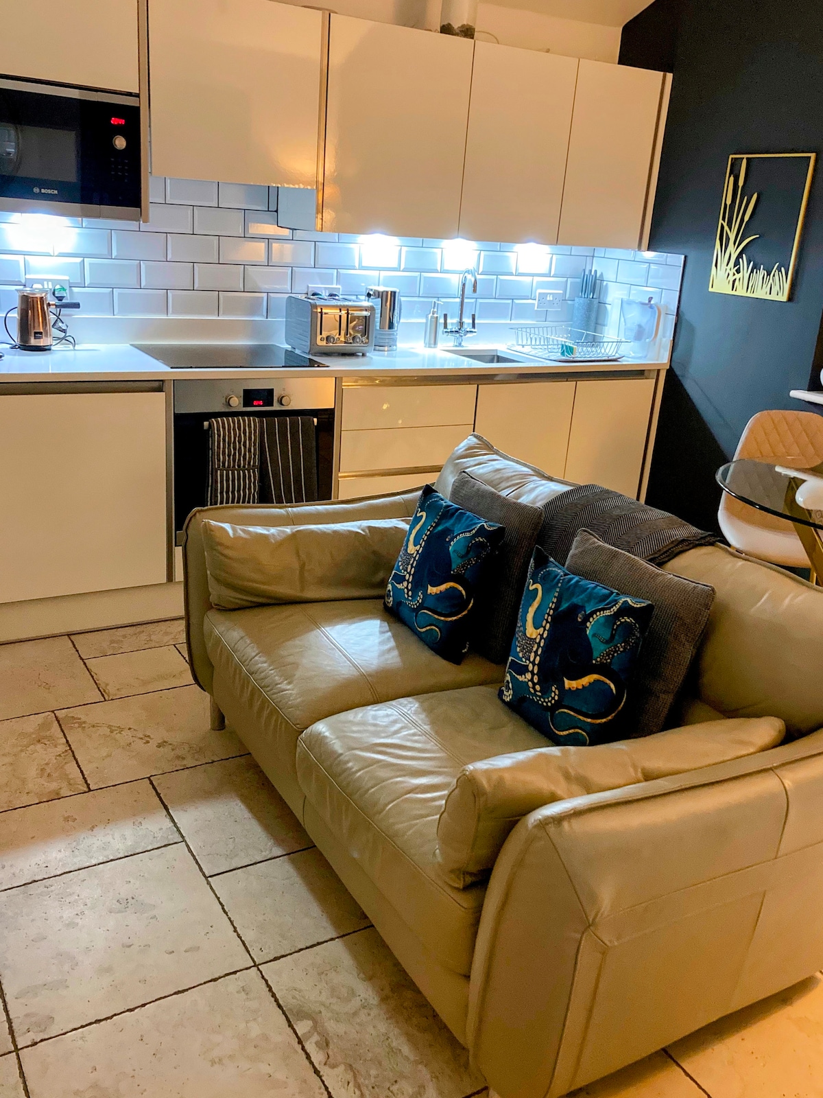After our storming success for 6 years with our cosy Hayloft Apartment, we have totally refitted the bathroom, installed a brand new kitchen and added a single bedroom / study. Fresh paint, blinds and carpets throughout! Guests have dedicated parking [Now with EV Charging] a private patio for sunny breakfasts, lunches or sundowners. Home-cooked ready meals are available in the fridge or freezer when you arrive. Message when you book and we can supply details. The Welcome pack's a big hit.
