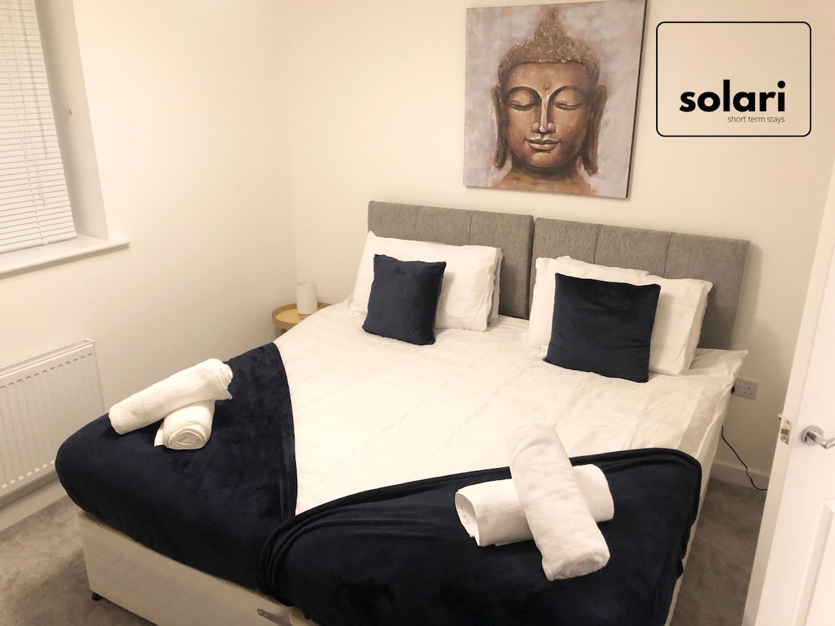 Great modern 2 bed apartment on the top floor. Its so peaceful and relaxing. You can enjoy the lovely sunset with purple skies on some nights in this calm, stylish space. It boasts a Juliet balcony which overlooks the children's play area just a stones throw away. The apartment is situated to the north of Cambridge business and science parks. Not far from the guided bus way (10 min walk) providing quick links to the historic Cambridge city centre and the surrounding historic villages.