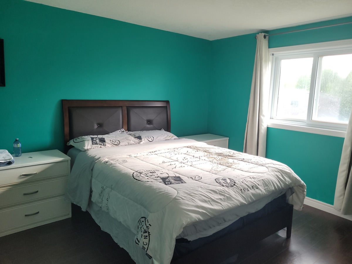 Welcome to your retreat in the peaceful neighbourhood in Waterloo! This fully-equipped, soundproofed 1-bedroom, 1-bathroom walk-out basement apartment offers privacy and comfort with all the amenities you need for a relaxing stay. Features: * Gourmet Kitchen: Fully stocked with all the appliances and tools needed * Desk Space with Monitor: Ideal for remote work or studying. * In-Suite Washer & Dryer: Enjoy the convenience of doing laundry in the comfort of your own apartment.