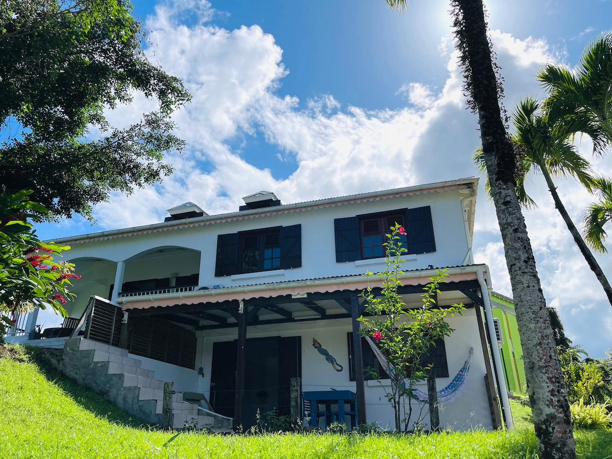 Séjournez dans notre villa avec espace piscine, nichée dans les hauteurs verdoyantes de Goyave. Idéale pour découvrir aussi bien la Basse-Terre que la Grande-Terre : plages, volcan, rivières, cascades... Profitez d’une terrasse panoramique, de la clim, d’une cuisine équipée, de lits confortables, d’une salle de bain italienne, buanderie, jardin, WC séparés, linge de maison fourni et d’une citerne d’eau (15 jours d’autonomie). Au plaisir de vous accueillir !