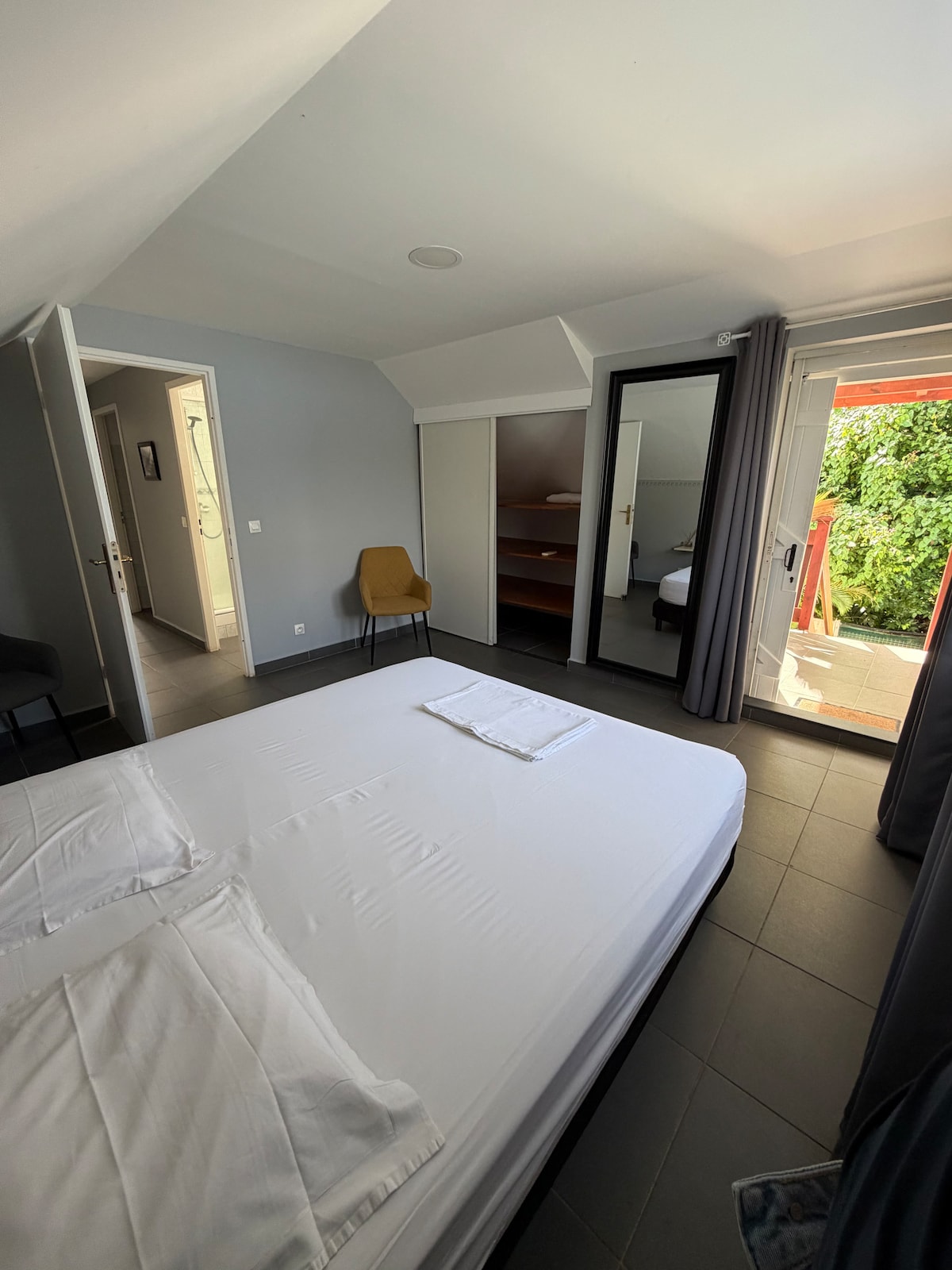 Appartement de 35 m² pour 2 personnes, avec vue sur les montagnes. Situé en rez-de-villa, il dispose d’un accès indépendant sans vis-à-vis pour plus d’intimité. Profitez d’une grande terrasse privative avec cuisine extérieure équipée, idéale pour savourer vos repas en pleine nature. Accédez librement au jardin tropical et à la piscine, parfaite pour se rafraîchir après une journée d’exploration. Un cadre paisible et ressourçant, idéal pour un séjour alliant confort, nature et détente !