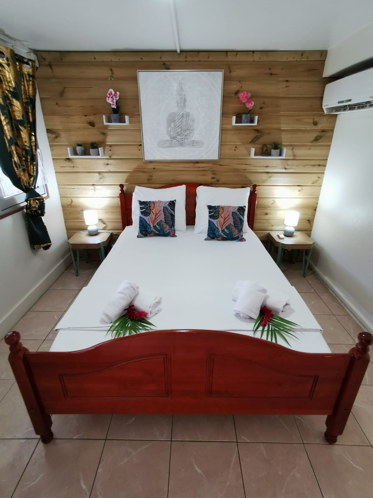 Nous vous proposons de vous détendre dans un appartement, jusqu'à 4 personnes, meublé et équipé, d'une surface de 50m2, avec 1 place de parking privatif, en lieu boisé et paisible avec un petit jardin permettant d'y faire un barbecue...proche de toutes commodités, à 1km d'une petite zone commerciale et à proximité d'un fast food créole "l'Agouba". Le logement situé au coeur de l'île permet d'avoir accès rapidement aux axes routiers afin de découvrir l'île.
