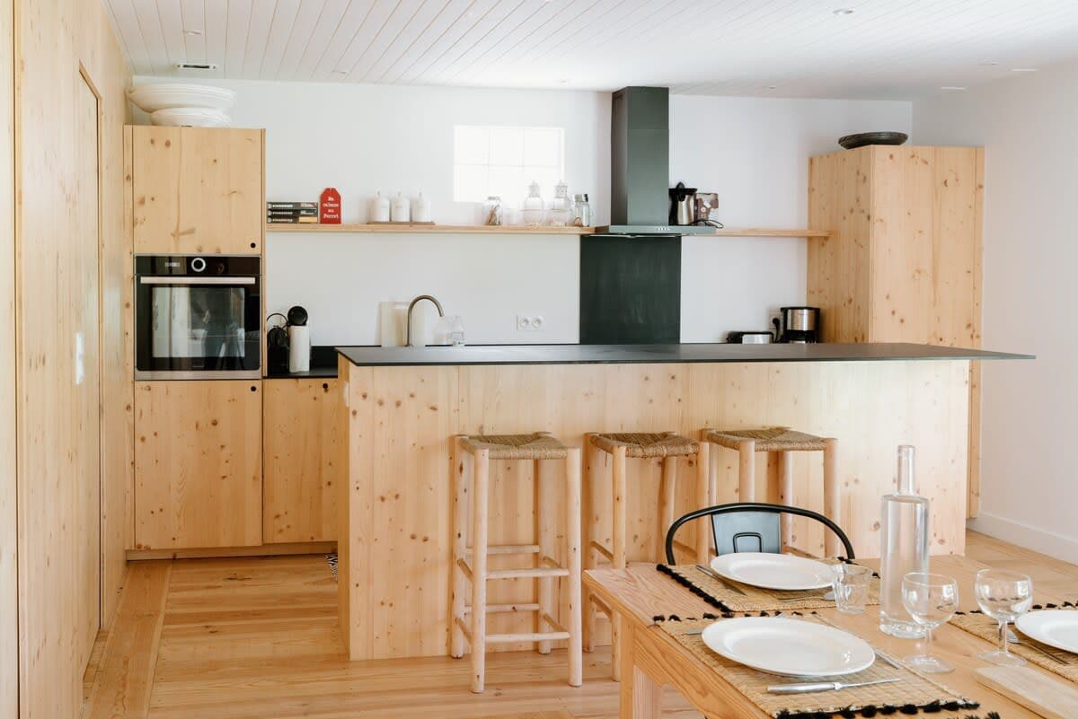 Niché sous les chênes et au calme nous vous invitons à découvrir notre charmant studio neuf de 40m2, idéalement situé entre Arcachon et le Cap Ferret. Ce studio, à la fois spacieux et confortable, est équipé d’une cuisine moderne, d’une climatisation réversible et d'un espace de travail équipé d’une connexion fibre. Une place de parking est à votre disposition avec possibilité de recharger votre véhicule électrique.