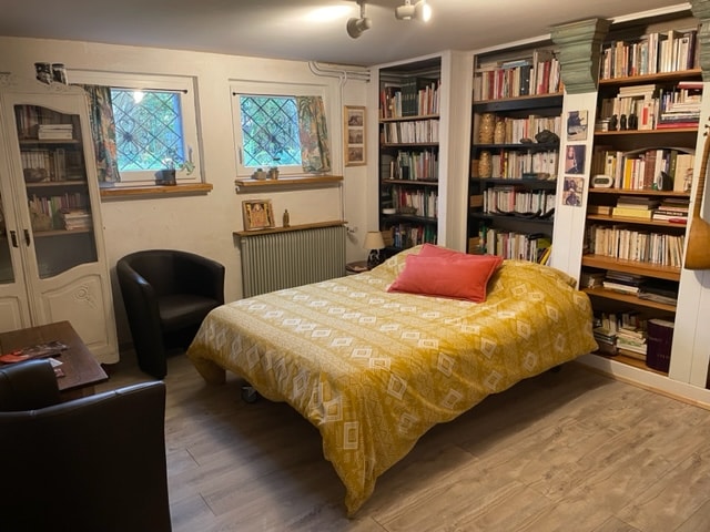 Newly renovated studio with private entrance situated in a calm residential home on the banks of a river. Five-minute walk to tram with direct access to Strasbourg. Two-minute walk to bakeries, grocery store, pharmacy, banks, indoor pool, bike path, pétanque courts, and forest trails. Golf, lake with beach and pédalo, and kayaking are a 10 minute drive. Your hosts are bi-lingual French/English. Sleep well thanks to a quality bed and linens.