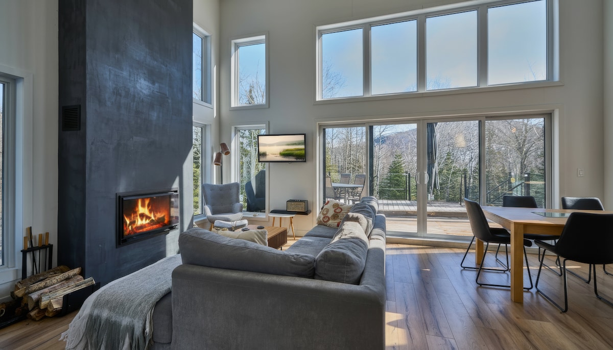 Experience 7 years of Superhost excellence in this modern Charlevoix haven. Perched on a mountain, our Zen retreat features forest-level windows and high-speed Fiber Optic internet. Just 10m from the top of Le Massif, 15m from the bistros and galleries of Baie-St-Paul and 1h from Quebec City. Enjoy "Northern Coziness" in a spacious living area designed for quality time. Ideal for quiet escapes; no parties or events. Your mountainside sanctuary for relaxation and exploration awaits. CITQ #298792