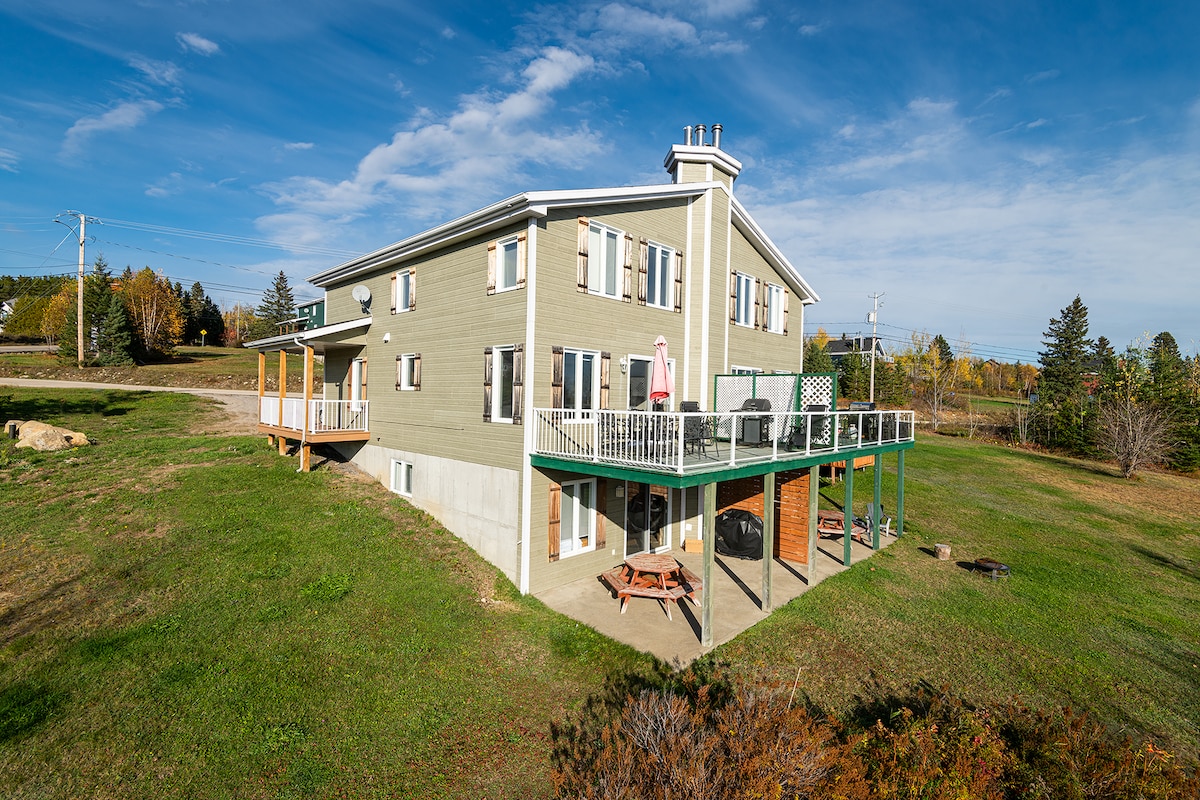 Situés entre fleuve et montagnes nos deux chalets côte-à-côte inspirent à la convivialité, la détente et le ressourcement. Vous serez sans aucun doute charmés par chaque pièce qui offre une vue imprenable sur le Fleuve St-Laurent et ses spectaculaires levers du soleil. Entourés d’une luxuriante végétation, les résidences offrent quiétude et confort! Entièrement équipées, spa, foyers, 3 chambres spacieuses et confortables, vous ne manquerez de rien! Capacité de 10 personnes par chalets.