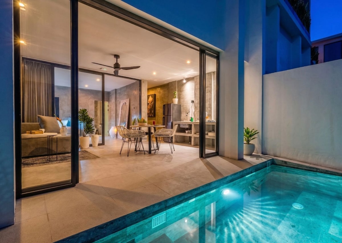 Step into Berawa Lofts #2 Unit 4, where modern elegance meets urban comfort. One of the collection of 9 contemporary New York-style lofts presents private plunge pools, fully equipped kitchens, and tranquil gardens, all tucked away in the bustling heart of central Berawa neighborhood in Canggu. Conveniently situated near the Montessori School, our property provides guests with a serene sanctuary to unwind and recharge amidst the vibrant energy of Canggu.