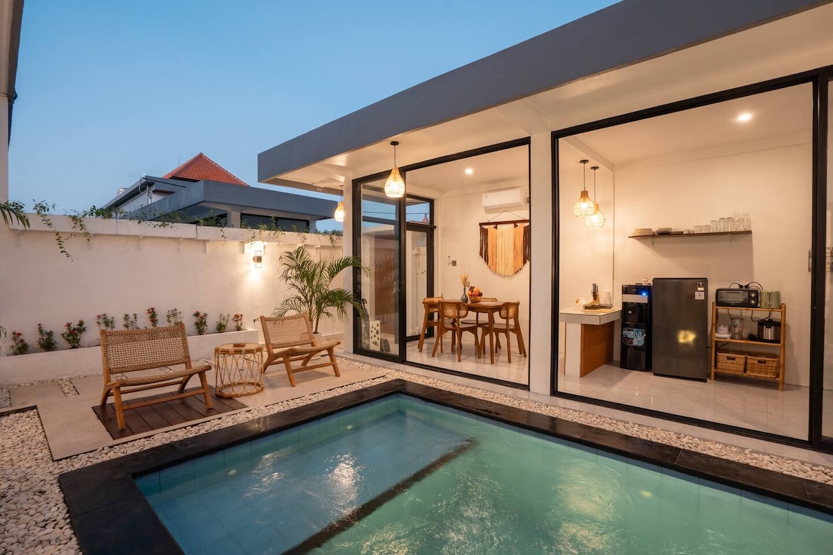 Nestled in a peaceful and secure Balinese village between Legian and Seminyak, Downtown_Villa offers the perfect blend of local charm and modern comfort. This 2-bedroom villa features an open-concept living area and a private pool — just a short walk to Kuta Beach, Double Six, Legian Street, and Bali’s best cafes, boutiques, and nightlife.