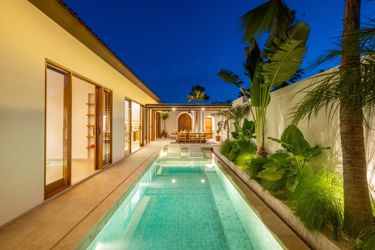 Sunbathe around the 10-meter private pool in the lush courtyard of this tranquil retreat. This home combines mid-century Californian architecture with the tropical essence of Bali. Bespoke furniture has been built and custom-created for this space. GENERAL NOTE: I also own the property next door. Bookings for both villas can be made in conjunction for larger groups. Please check other property under my profile.
